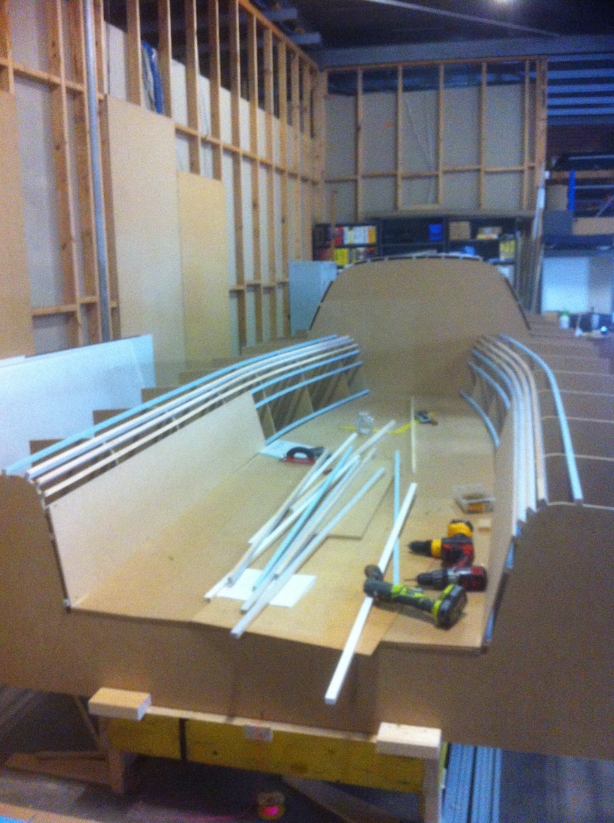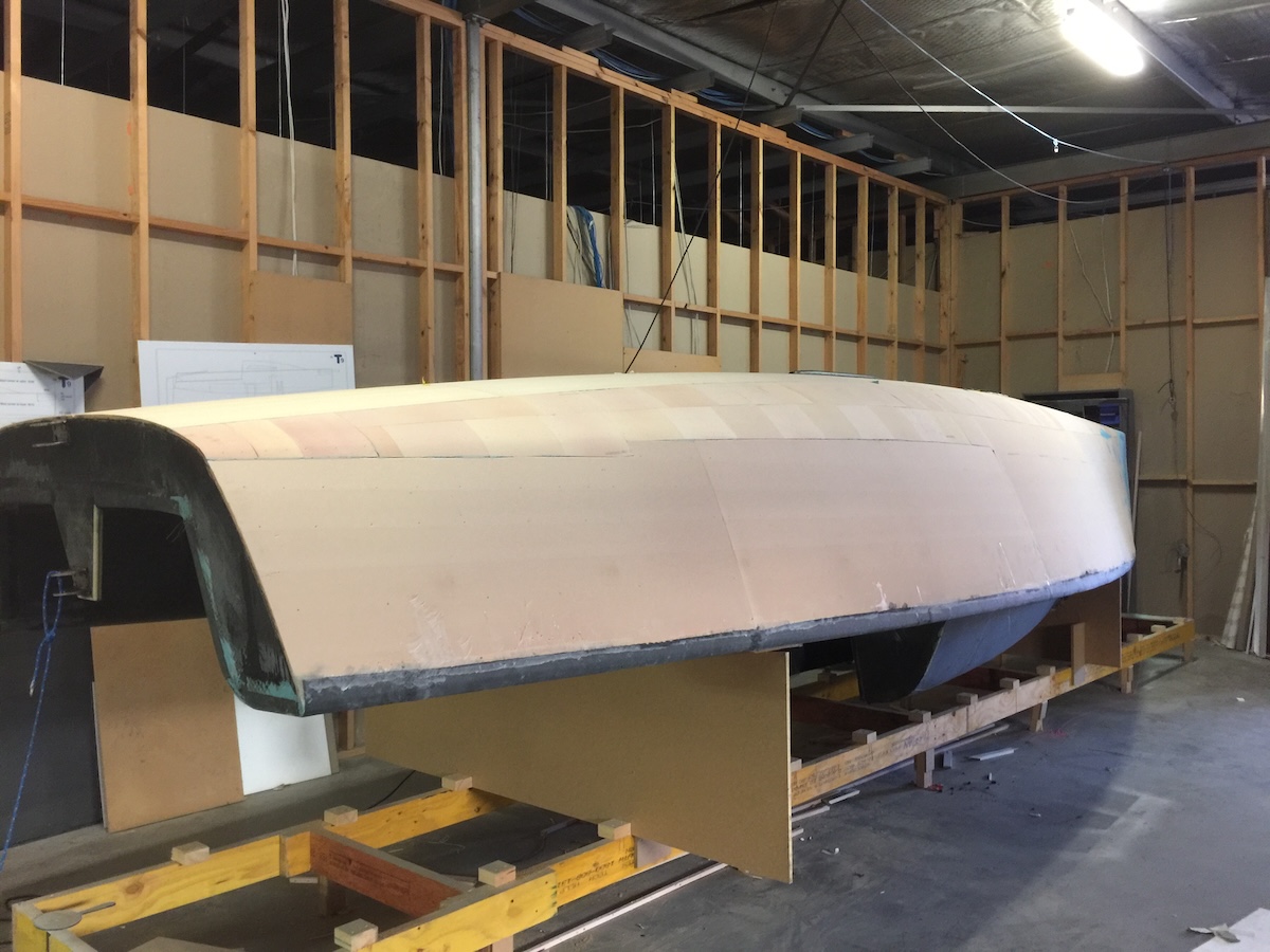 Following Steveโs process of building, I first build a male deck mould which, in the end, gave me the skills and confidence to push on. The first full Infusion of the deck itself was pretty nerve racking. The deck with Carbon Foam Sandwich, was infused as a one piece, 30-foot unit and successfully popped off the mould a week later to my relief.
