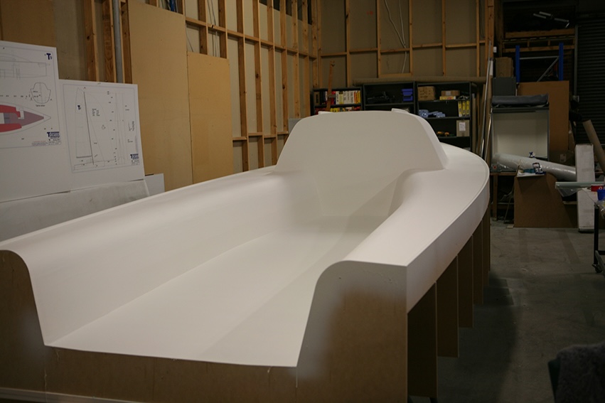 It then became time to surface and finish the hull. This process was made easier because of the care taken throughout the build process. The designs were supplied in a way that I could create accurate building platforms and moulds. The process was modular, building major components separately and then assembling them which again made for more accurate final assembly.